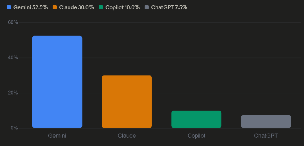 それがたった3年で、Gemini・Claude・Copilotと選択肢が一気に増えて、ChatGPTが相対的に埋もれていく。。時代の変化って早いなあと、この結果を見てしみじみ思いました。