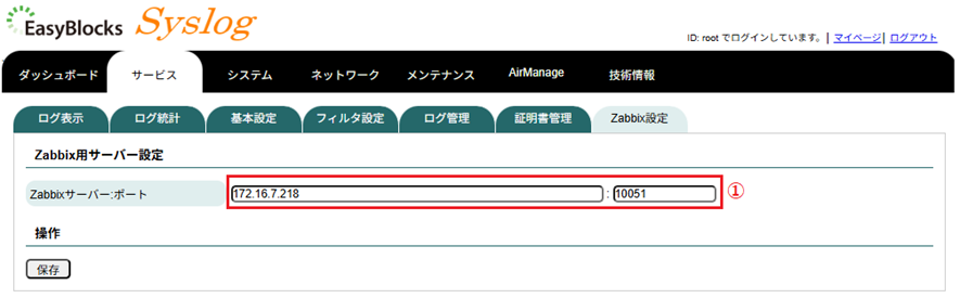 設定の順番としてはEasyBlocks Syslog側より先にZabbixサーバー側を済ませておく必要があります。
