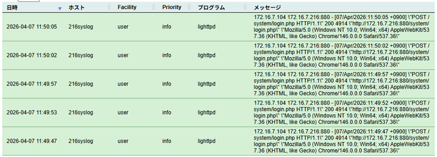 まずEasyBlocks Syslog自身のログ表示画面で、該当のアクセスログが正しく記録されているかを確認します。