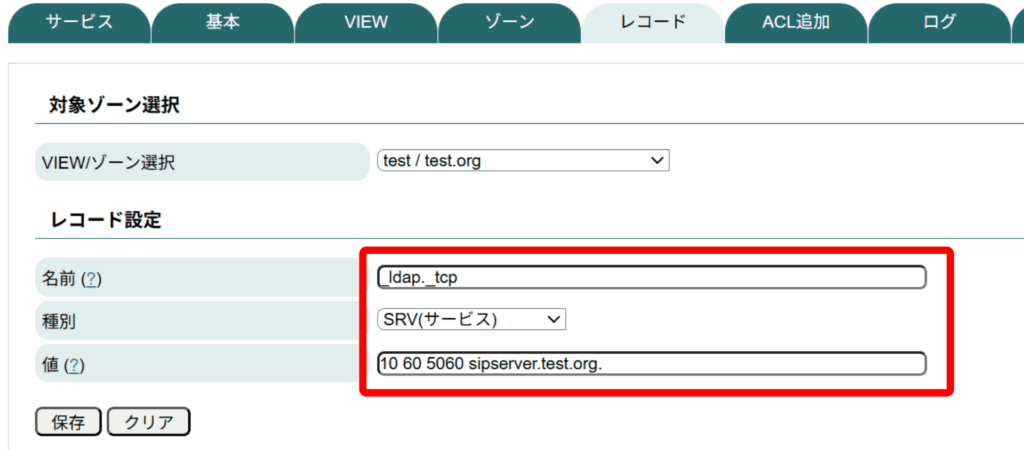 正引きゾーンのレコード設定にて、SRV(サービス)レコードを設定することが可能です。