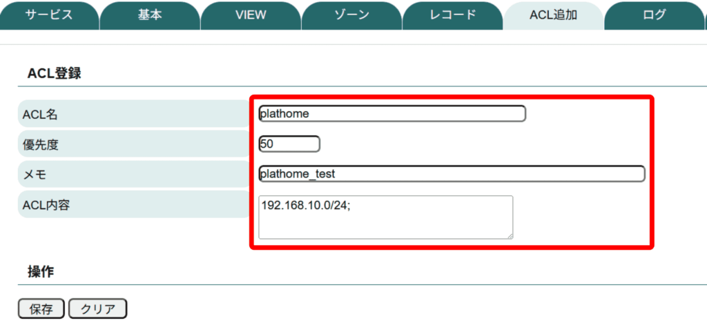 DNSにおけるユーザー定義のACL(アクセスコントロールリスト)を設定し、アクセス元の制御や各種設定に適用することが可能です。