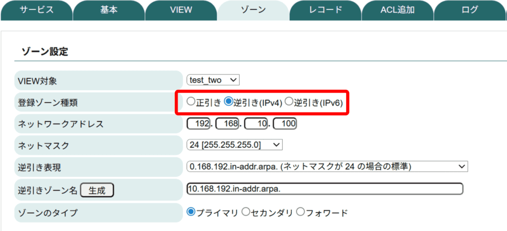正引きゾーンにおけるSRVレコード
