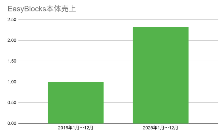 そんな EasyBlocks シリーズですが、2016年を基準に比較すると、本体売上は2倍以上に成長しています。
