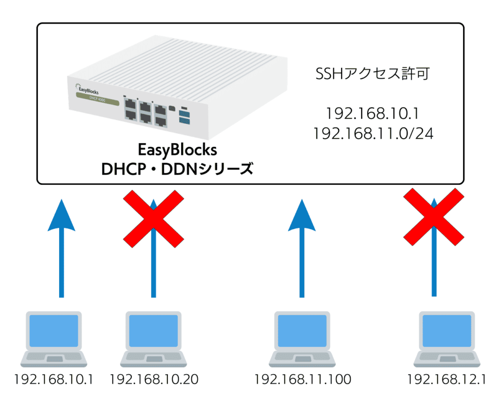 指定したIPアドレスやネットワークしかEasyBlocksにSSHアクセスできないように設定することが可能なため、SSHからの不正アクセスを防止できます。