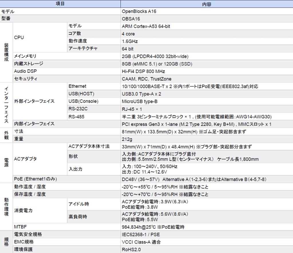 ・OpenBlocks A16:コンパクトでコストパフォーマンスに優れたモデル。