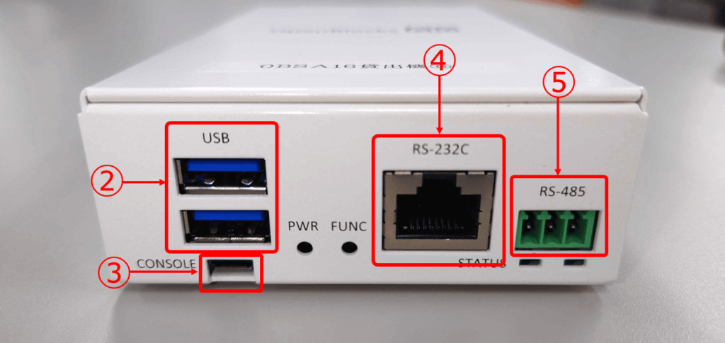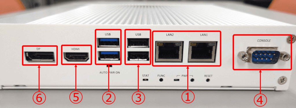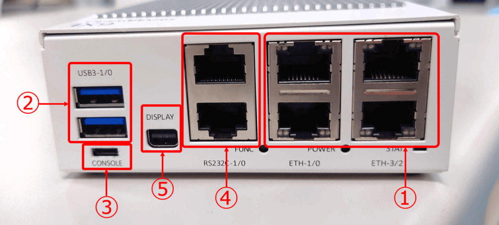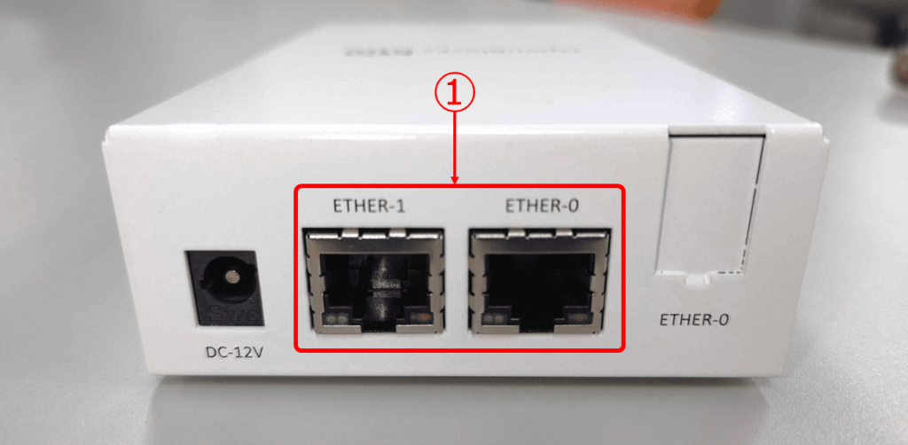 ① Ethernet 10/100/1000BASE-T x 2 (ETHER-1(左側のポート)のみ PoE対応)