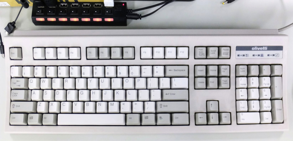 (タイプライターメーカのOlivetti社のキーボード(製造はミネビア )。25年くらい前に購入して、7年前から使用中とのことです。)