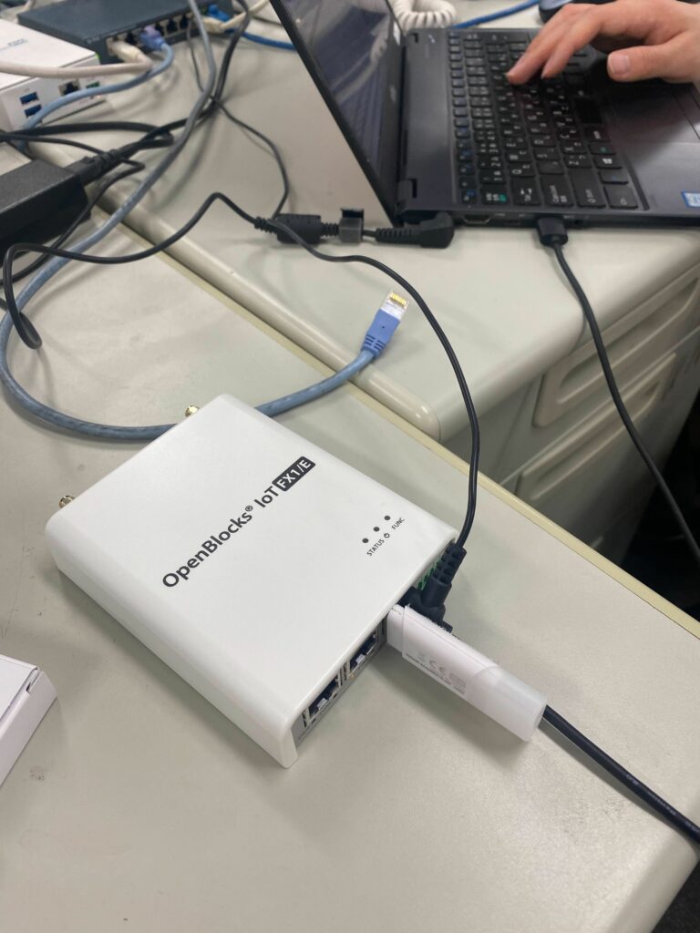 漏水パッケージのキッティングでは、OpenBlocks IoT FX1/Eを漏水パッケージ専用にセットアップし、無線漏水センサーからの漏水検知を受信→メール通知できるように構築しており、センサーやパトライトと通信できているかのチェックも1つ1つ行ってます。